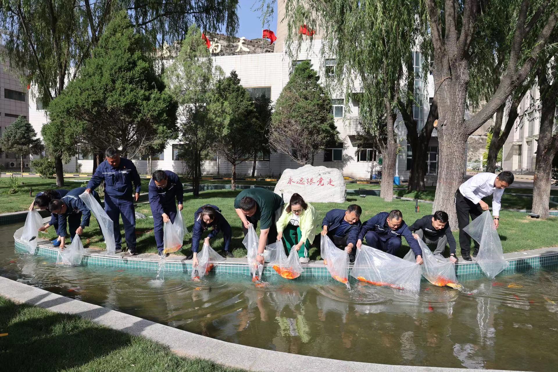 “這水池里就差魚了。”這不,該公司合作商安徽艾普克斯智能科技有限公司主動提出要捐贈錦鯉魚。5月30日下午, 200余尾色彩斑斕的錦鯉魚送至公司花園處,該公司領(lǐng)導(dǎo)班子成員、員工代表和嘉賓一道,將活蹦亂跳的魚兒一同放入池中,錦鯉魚在池中愜意游躍,憨態(tài)可掬。