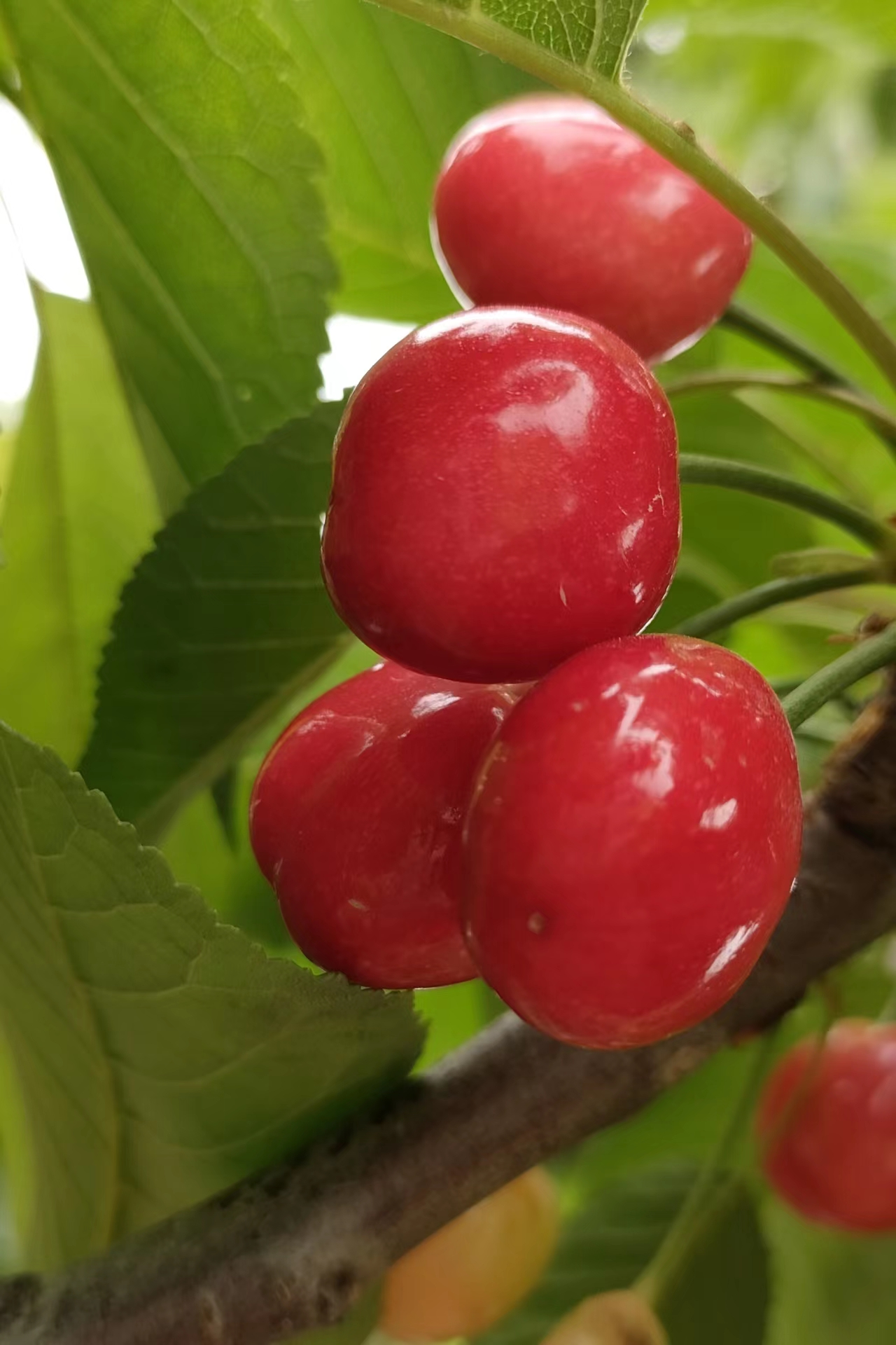這次回家,有幸見識了享有“早春第一果”美譽之稱的櫻桃。來到田間,遠遠望去,在綠蔥蔥的樹葉下,通紅通紅的櫻桃綴在樹葉間,在陽光照射下分外耀眼。櫻桃外表色澤鮮艷、晶瑩美麗、紅如瑪瑙,黃如凝脂,玲瓏剔透,煞是可愛。