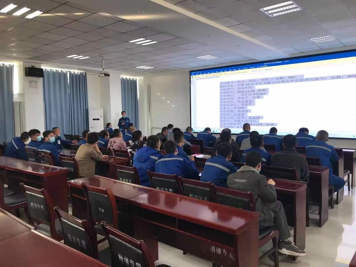 近日,神木煤化工天元公司加氫車間在職工活動中心二樓培訓室舉辦特殊作業票證辦理競賽,車間四個班組分別選派3名員工參與競賽。