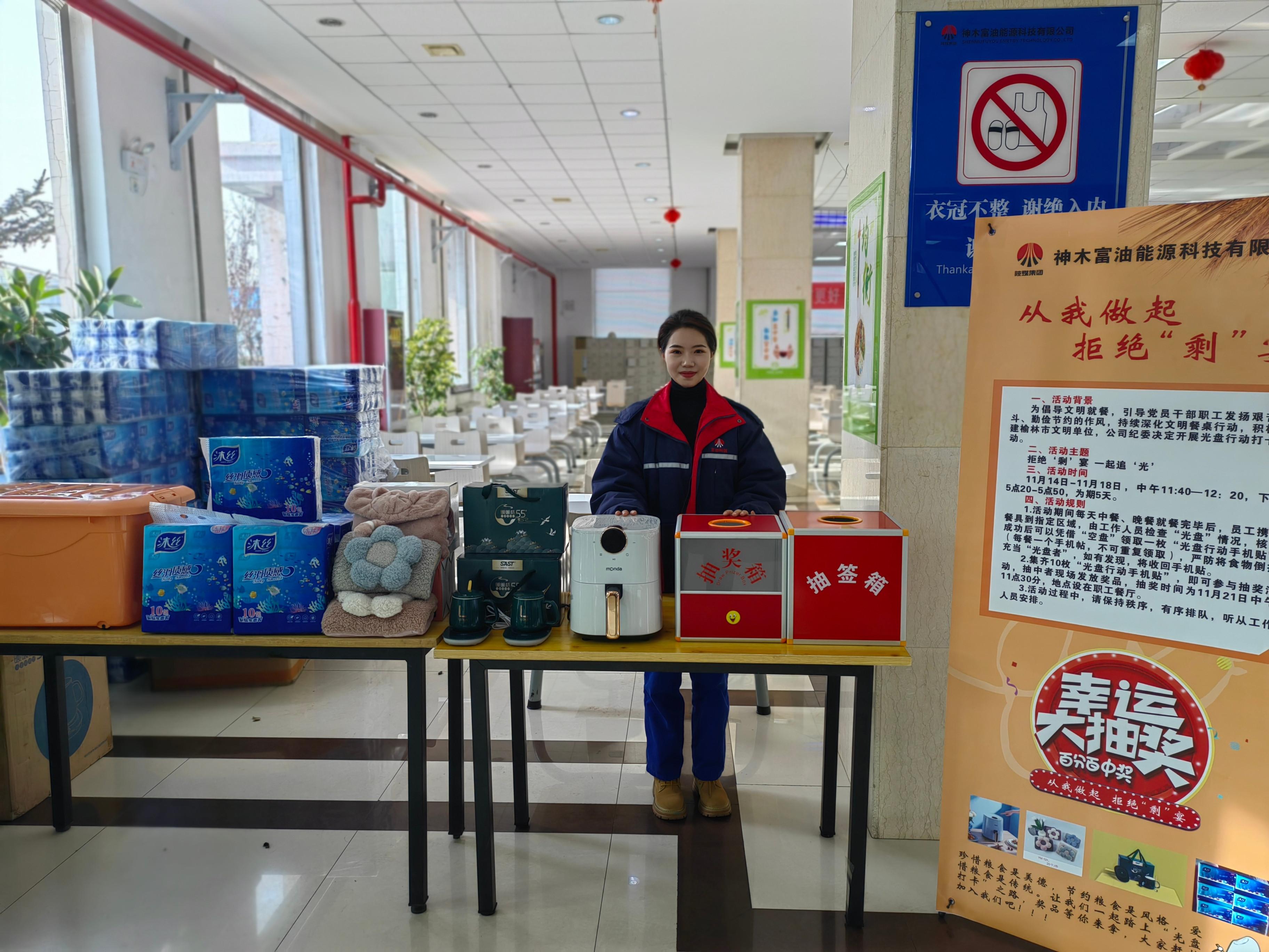 近日,在神木煤化工富油公司員工餐廳,員工每餐只要光盤,就可以領到紀委發放的“光盤卡”1張,集滿五種顏色的“光盤卡”就可以參與刮刮樂抽獎,兌換相對應的獎品,從而鼓勵廣大員工爭做“節儉養德,文明用餐”的實踐者。