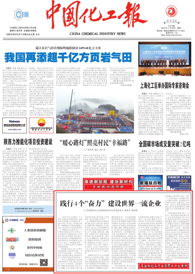 習(xí)近平總書記在黨的二十大報告中就推動高質(zhì)量發(fā)展、實施科教興國戰(zhàn)略、加快建設(shè)世界一流企業(yè)等工作作出一系列重大部署。陜煤集團作為陜西省屬骨干企業(yè),堅決把學(xué)習(xí)宣傳貫徹黨的二十大精神作為當前和今后一個時期的首要政治任務(wù),堅持以習(xí)近平新時代中國特色社會主義思想為指導(dǎo),深刻領(lǐng)悟“兩個確立”的決定性意義,準確把握新時代新征程國有企業(yè)的戰(zhàn)略定位,踐行4個“奮力”,加快建設(shè)世界一流企業(yè),以新?lián)斝伦鳛樨暙I現(xiàn)代化國家建設(shè)。