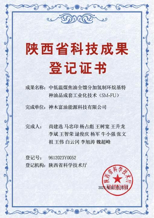 喜訊!富油公司自主研發技術獲陜西省科技成果證書