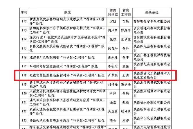 近日,陜西省科學技術廳公布了2023年度秦創原“科學家+工程師”隊伍入選名單,神木煤化工天元公司先進功能性煤焦油基新材料“科學家+工程師”隊伍成功入選。