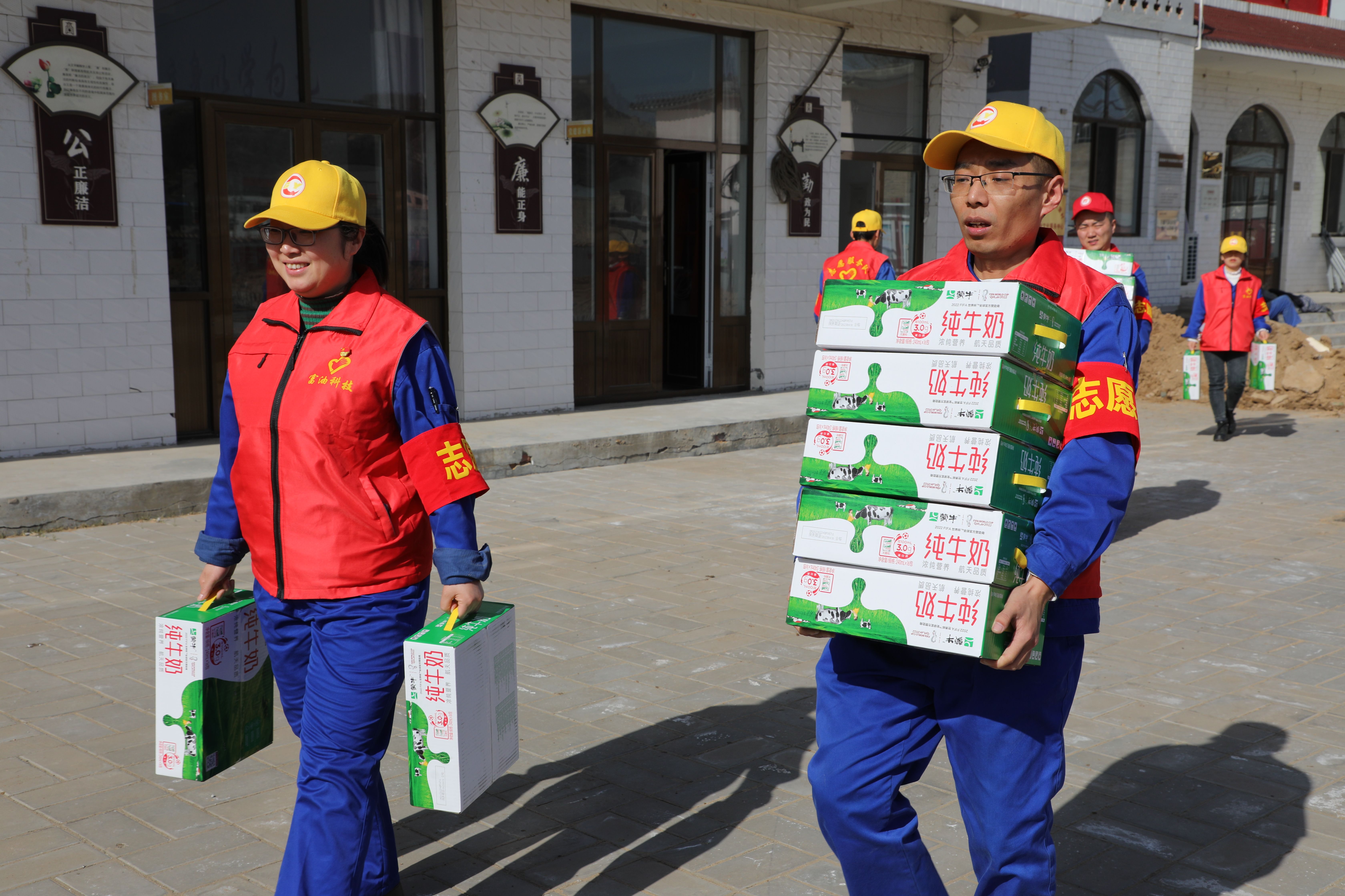 黨員志愿者帶著誠意和愛心而來,給老人們帶來牛奶、面粉、大米等慰問品,讓老人們感受家的溫暖和親人的關懷。