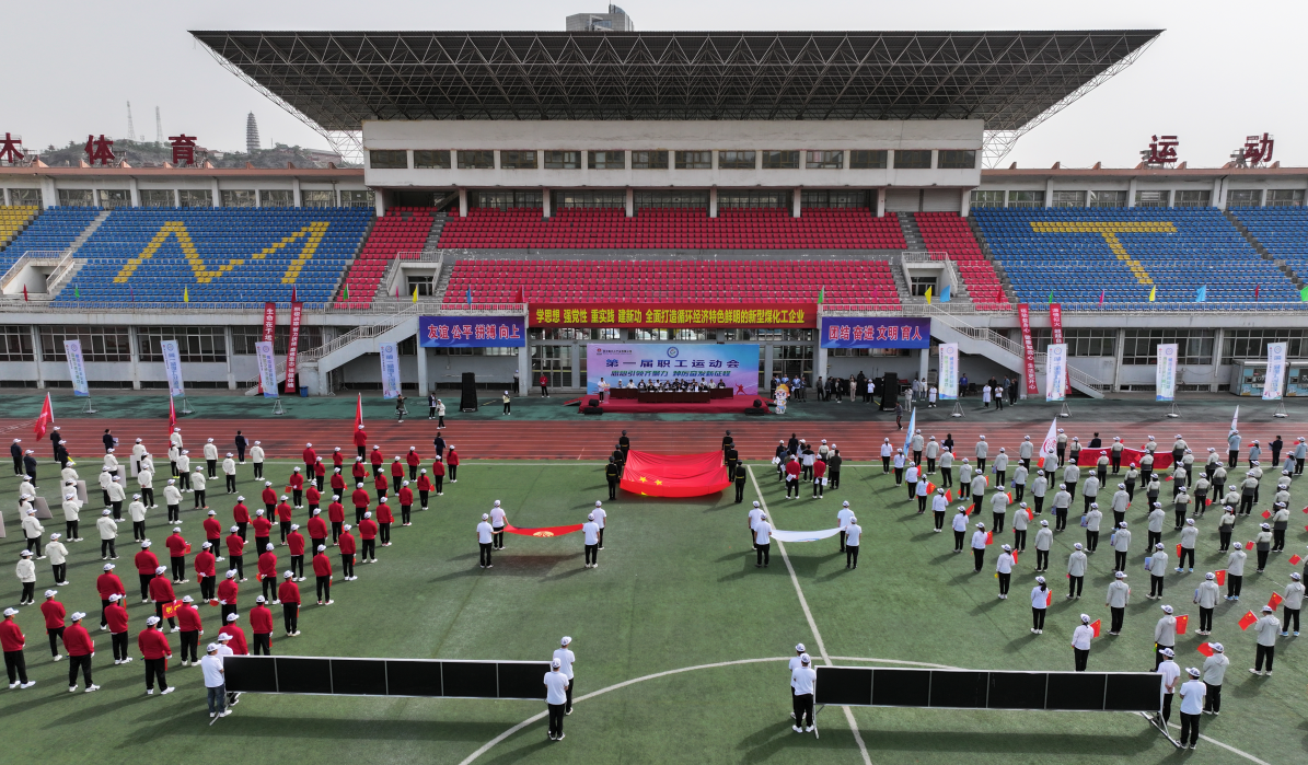 國旗飄飄,彩旗獵獵。三百健兒,神采飛揚。方陣威武,隊列從容。英姿颯爽,號子響亮。升旗奏樂,職工肅穆;開幕致辭,掌聲轟鳴。天籟之音,謳歌時代;腰鼓表演,震撼全場。領導接力,增進班子團結;吶喊助威,提升干部合力。