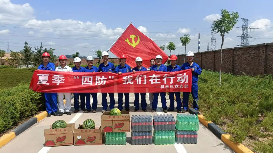 一線送清涼,關懷鼓干勁。進入盛夏以來,持續高溫天氣對奮戰在檢修一線的職工帶來嚴峻“烤”驗。為切實做好防暑降溫工作,機電儀黨支部積極開展“夏季四防,我們在行動”主題活動。黨支部副書記周春帶領黨員干部向堅守在高溫一線職工朋友送去了西瓜、飲品等防暑降溫物品,把清涼送到一線工作區域,把關懷送到員工的心坎里,對他們的辛勤勞動表示誠摯的問候和衷心的感謝,并叮囑員工們合理調整休息時間,面對高溫天氣時要扛起抓安全責任意識,保障大家職業安全和身心健康,切實做好防暑工作,真正將黨的溫暖送到職工群眾手中,讓長期辛苦在生產一線的職工感受到黨組織的關懷和溫暖。