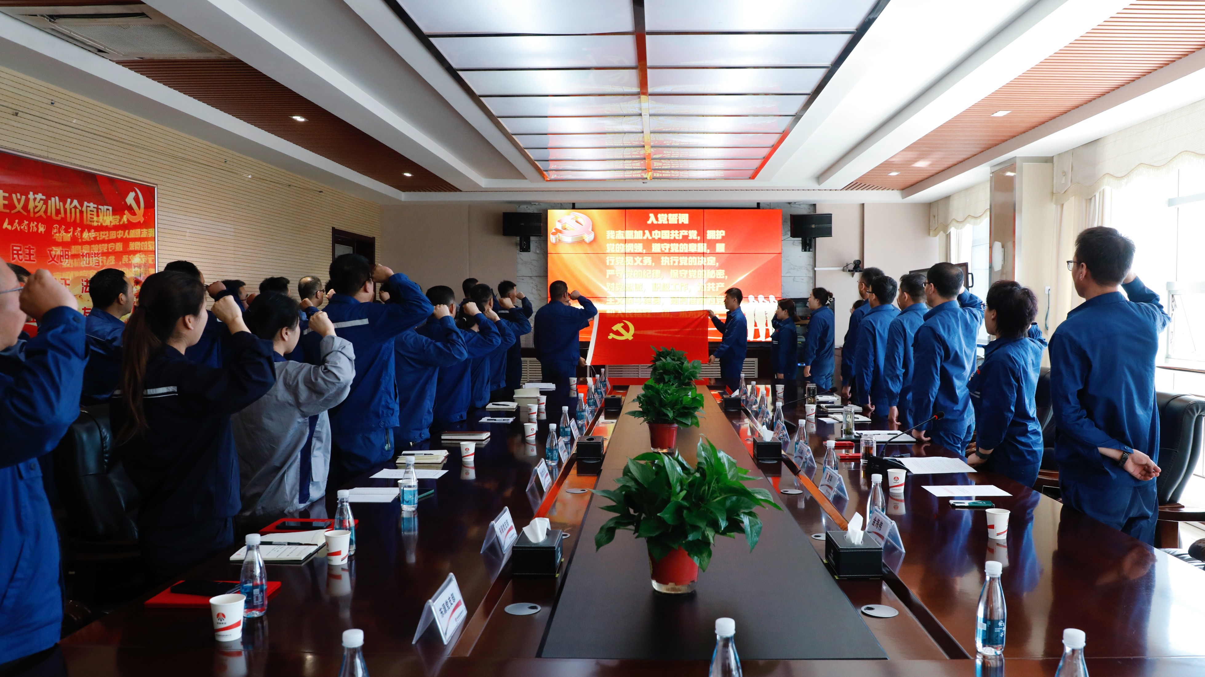 本年度預(yù)備黨員在會(huì)上進(jìn)行了宣誓,全體黨員重溫入黨誓詞后,能源公司黨委書記、董事長(zhǎng)張進(jìn)峰,黨委副書記、紀(jì)委書記、工會(huì)主席閔立娟為他們贈(zèng)送了《中國共產(chǎn)黨章程》并佩戴黨員徽章。大家紛紛表示深切感受到了公司黨委對(duì)自己的囑托,切實(shí)體會(huì)到了加入黨組織來的歸屬感和認(rèn)同感。