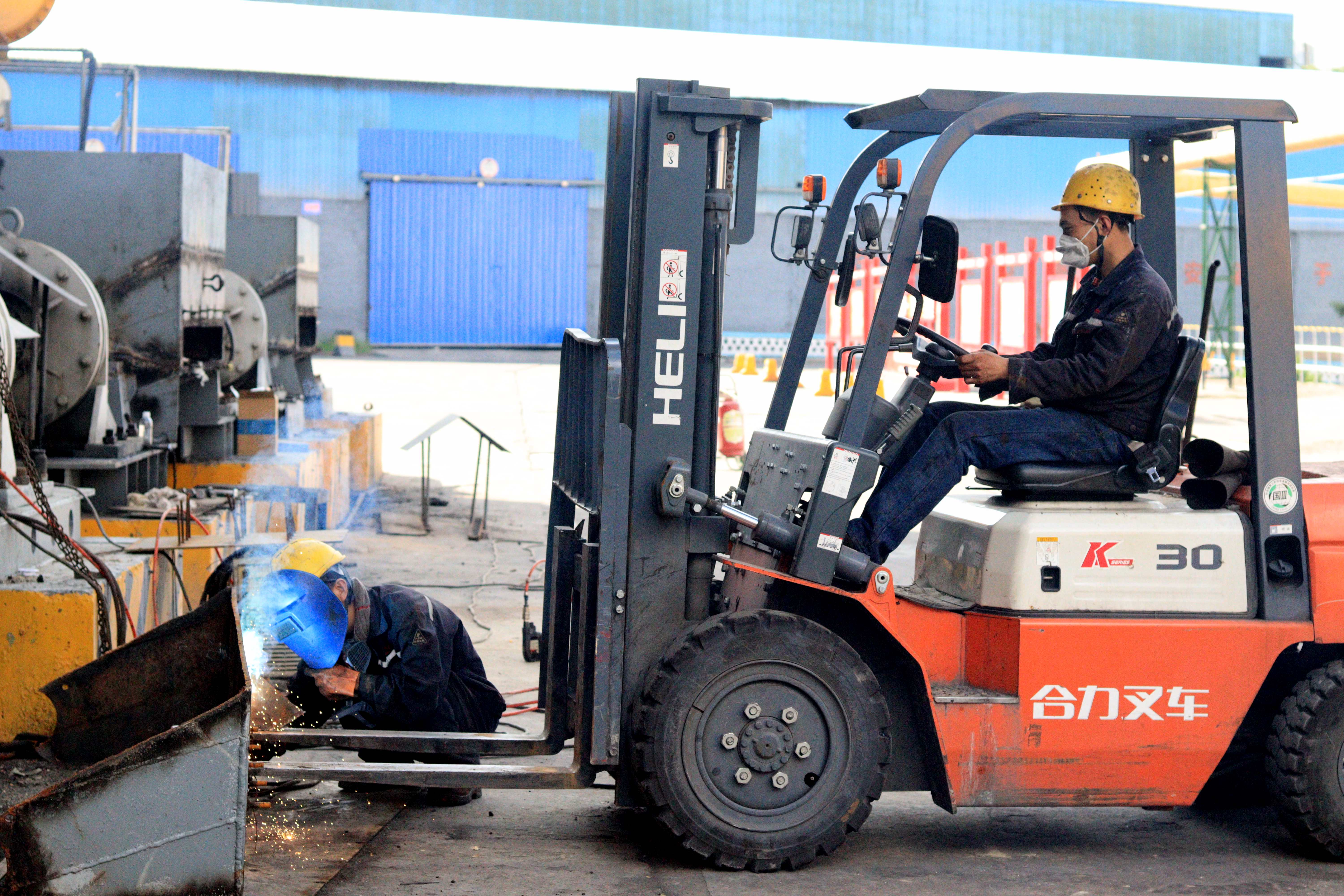 “往左一點點,對,再往前一點,OK可以了”3#刮板機前,一人負責著指揮方向,一人負責駕駛叉車搬運刮板機頭擋板,另一個人確認方向位置無誤后,手持電焊,伴隨著耀眼的焊花進行著焊接工作,在此之前,他們已經合力完成了鏈輪及軸套的維修和更換。