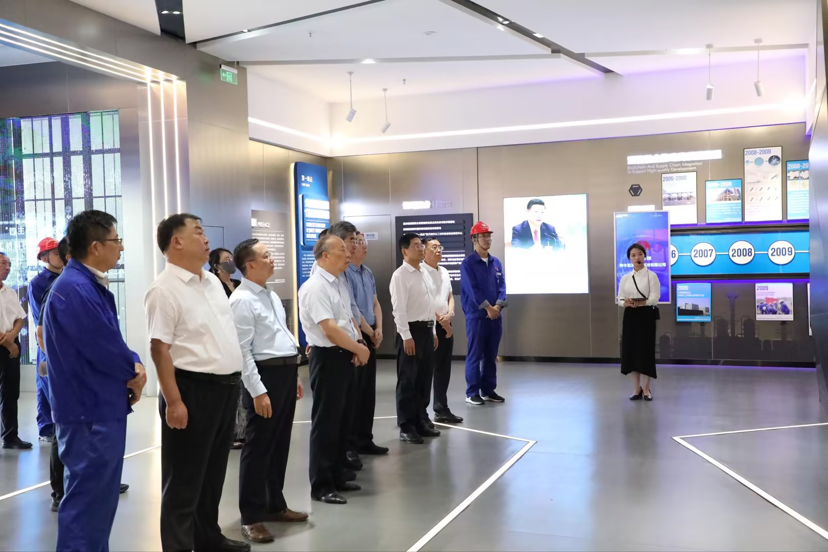 調(diào)研中,鄭志飚一行參觀了富油公司文化展廳,通過觀看宣傳片、現(xiàn)場講解、圖片文字材料和實(shí)物模型等方式詳細(xì)了解了企業(yè)發(fā)展歷程、企業(yè)文化、技術(shù)特色、產(chǎn)品優(yōu)勢(shì),零距離、多維度感受了富油公司科技創(chuàng)新發(fā)展成果。期間,鄭志飚就當(dāng)前煤化工產(chǎn)業(yè)項(xiàng)目建設(shè)和技術(shù)創(chuàng)新發(fā)展趨勢(shì)與該公司副總經(jīng)理王樹寬進(jìn)行了探討交流。