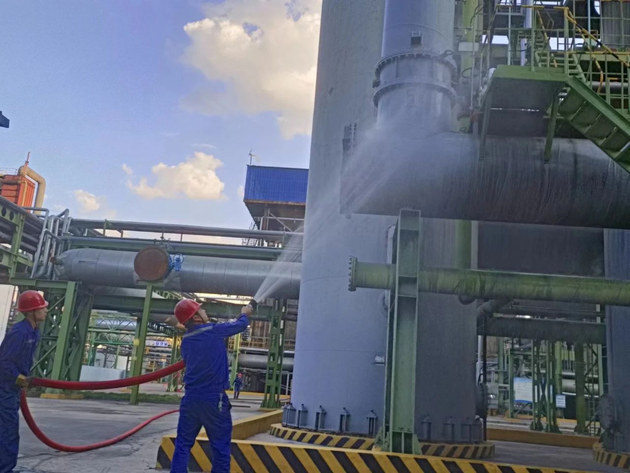 當日16時,演練正式開始。演練模擬焦化車間一期6#直冷塔防雷接地出現(xiàn)松動,煤氣管道遭受雷擊后,因高溫煤氣管破裂,內(nèi)部煤氣發(fā)生泄漏并導致火災。演練中,警戒組、工藝處置組、搶險消防組人員嚴格按照演練計劃及職責分工,有序開展人員疏散、現(xiàn)場警戒、炭化爐燜爐操作、調(diào)節(jié)羅茨風機吸力、滅火救援、環(huán)境監(jiān)測、污水收集等工作。最終,經(jīng)過大家半小時的努力,險情消除,圓滿完成演練任務。演練結束后,車間管理人員進行了點評,肯定了演練取得的成效,并指出了存在的問題與不足。