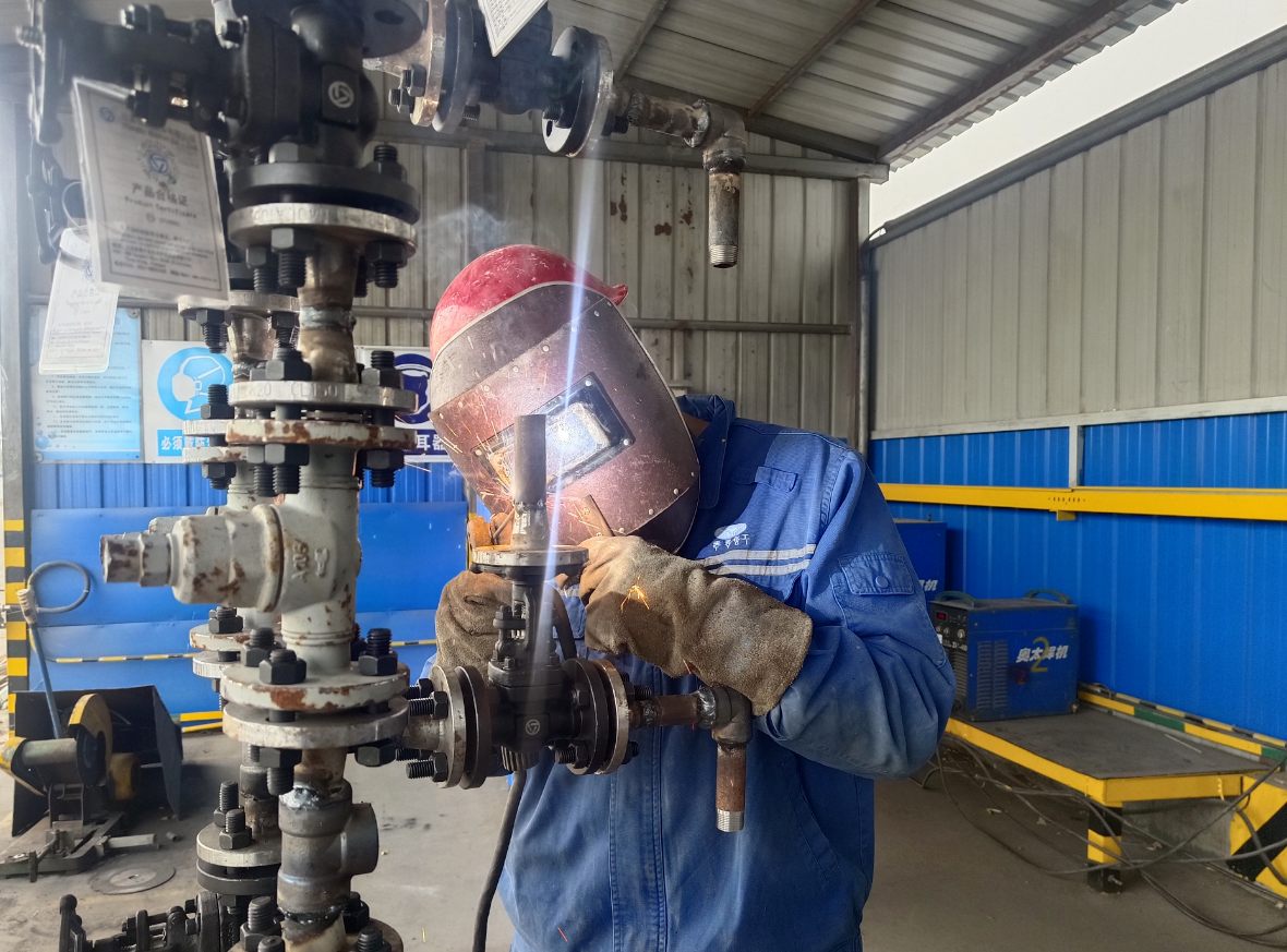 走進神木煤化工天元公司檢修車間的焊工棚,一名身穿藍色工服,頭戴紅色安全帽的職工正在聚精會神地進行焊接作業,只見他心平手穩,操作精準,不一會兒,兩個斷面便慢慢“縫合”起來。