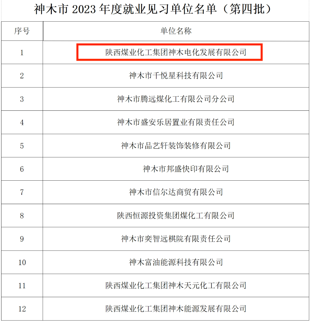 近日,神木市人力資源和社會(huì)保障局公布了2023年度就業(yè)見習(xí)單位名單,神木煤化工電化公司榜上有名。