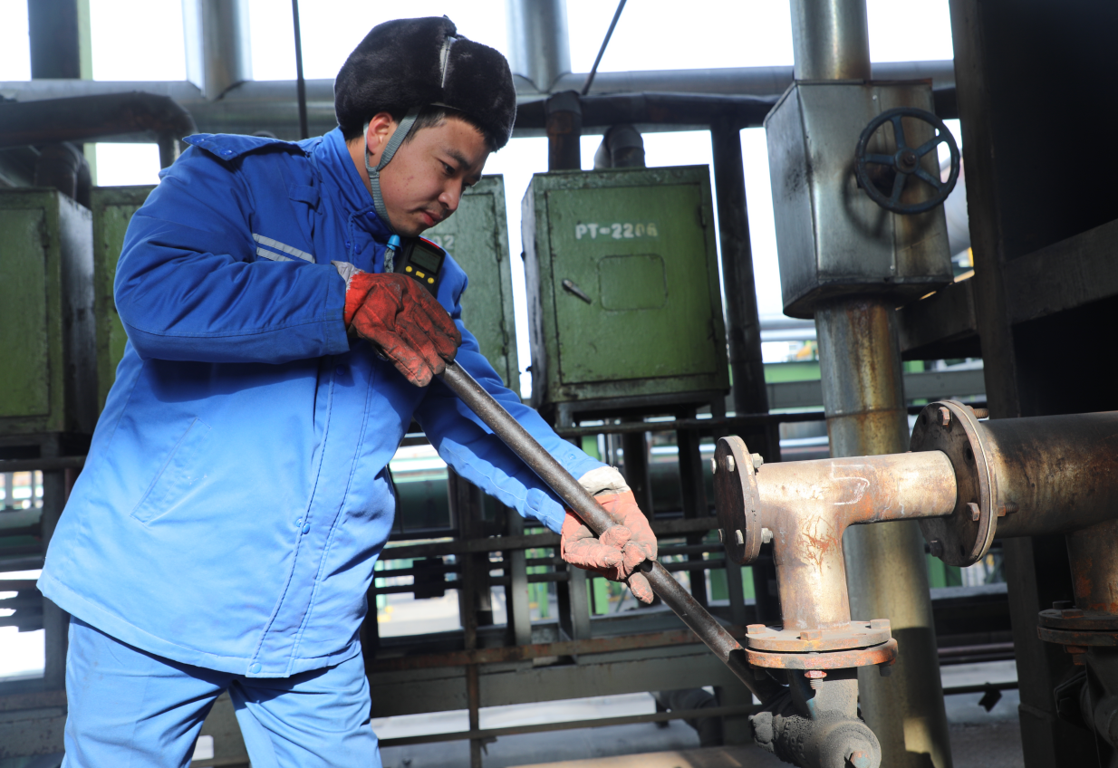 加氫車(chē)間杜沛奇在檢查伴熱疏水閥溫度是否正常