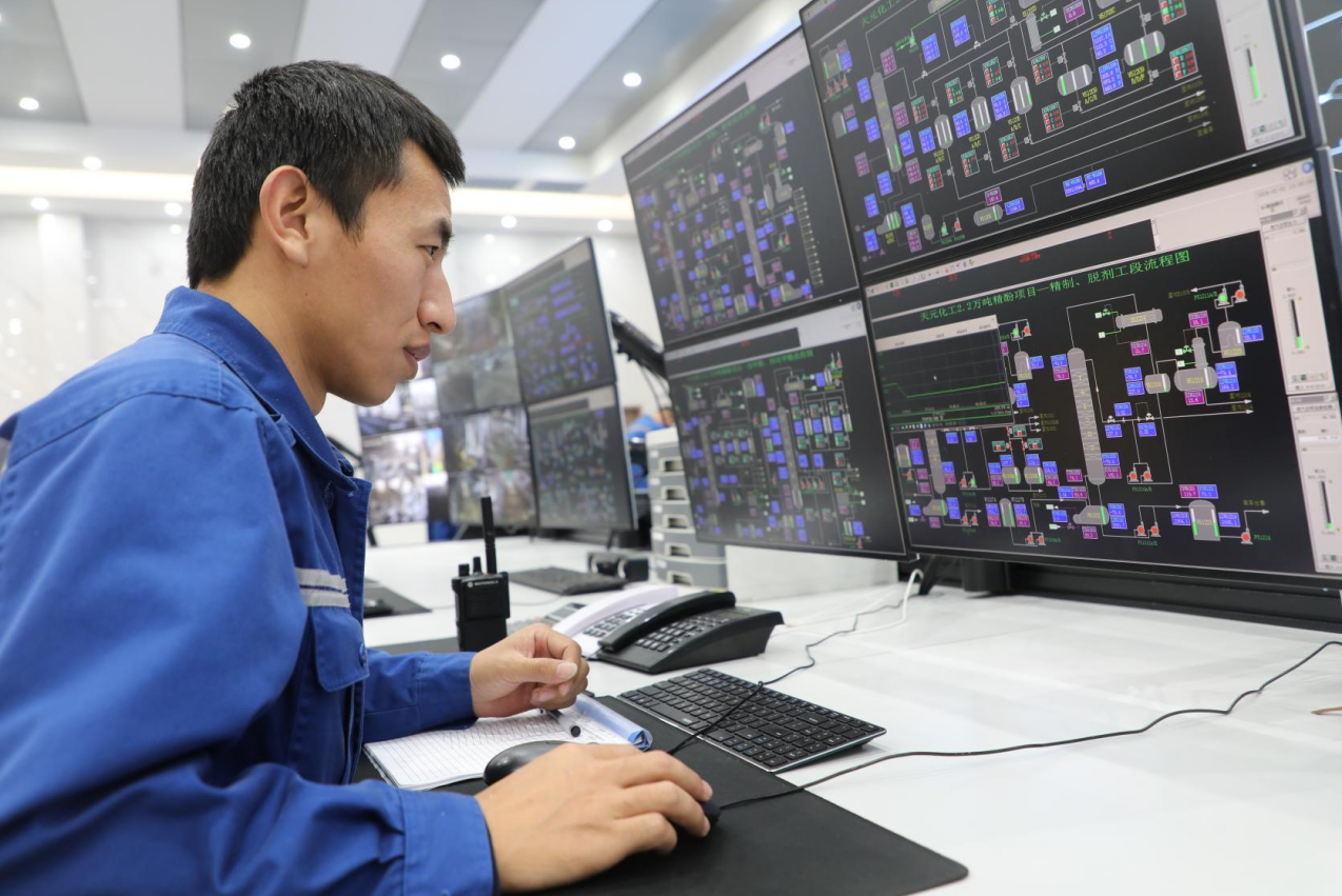 精酚車(chē)間王李旭在認(rèn)真監(jiān)盤(pán)