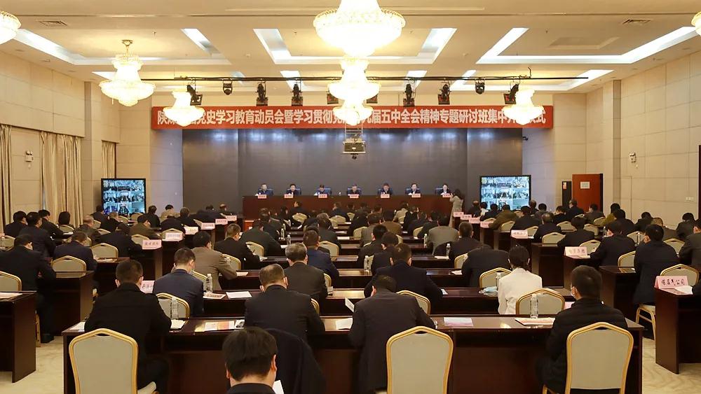 3月8日,陜煤集團召開黨史學習教育動員會暨學習貫徹黨的十九屆五中全會精神專題研討班集中開班儀式,深入學習貫徹習近平總書記在黨史學習教育動員大會上的重要講話精神,全面落實黨中央、省委、省國資委黨委黨史學習教育工作要求,對集團黨史學習教育作出安排部署,同時對四期學習貫徹黨的十九屆五中全會精神專題研討班進行動員。集團公司黨委書記、董事長、黨史學習教育領導小組組長楊照乾講話,集團黨委副書記、總經理、領導小組副組長嚴廣勞主持會議,集團黨委副書記、董事、領導小組副組長尤西蒂對集團開展黨史學習教育實施方案作說明。