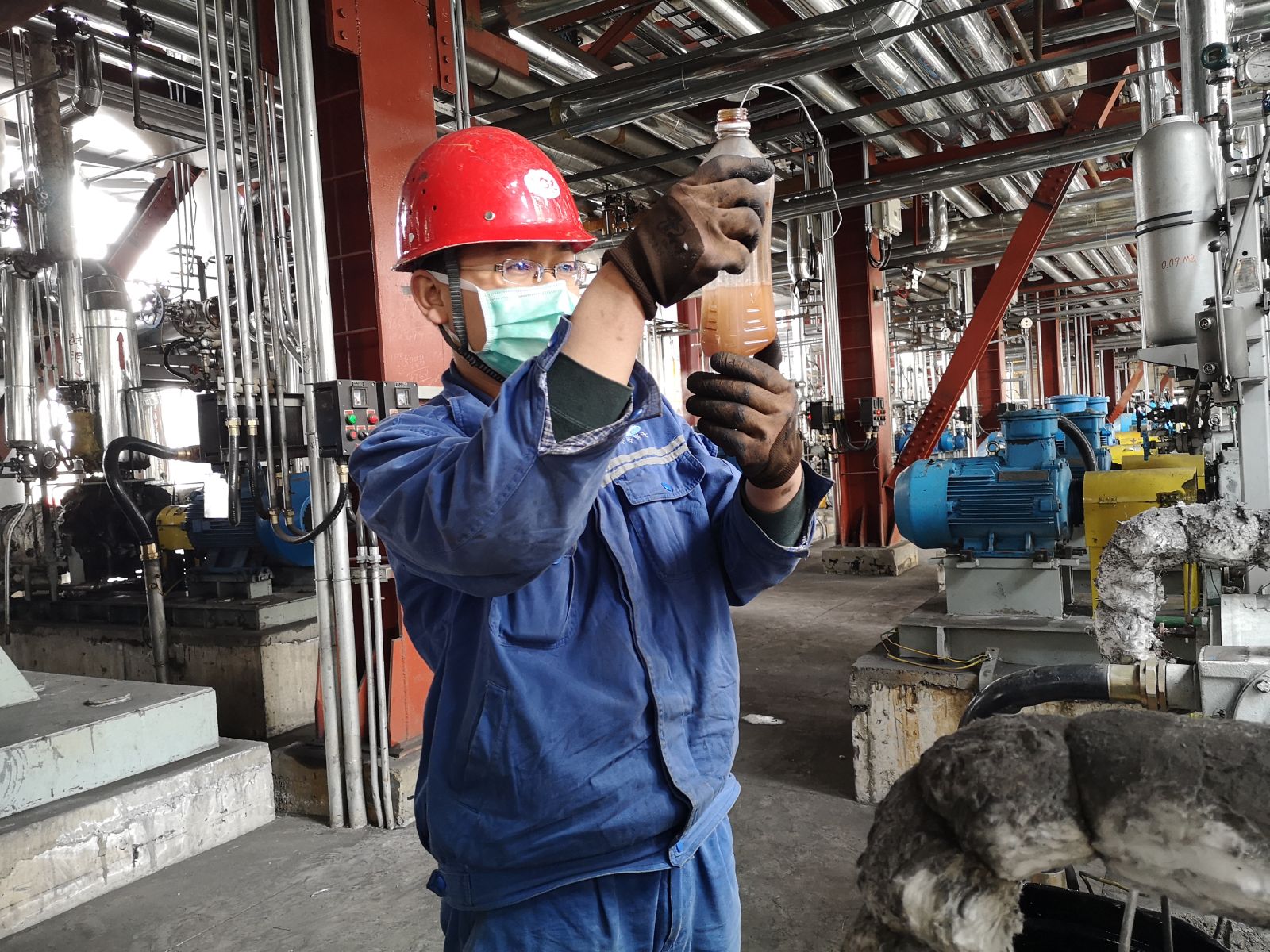 有時刻在粉煤熱解一線指導和監督生產運行中工藝參數,確保生產裝置安全穩定運行的車間第一黨支部黨員謝薛強。