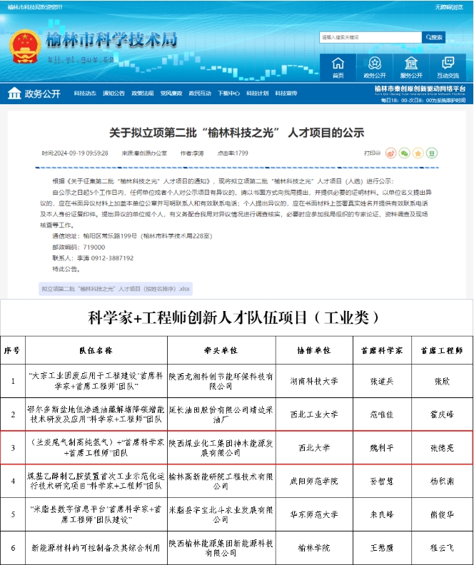 喜訊!能源公司創(chuàng)新人才項(xiàng)目入選第二批“榆林科技之光”