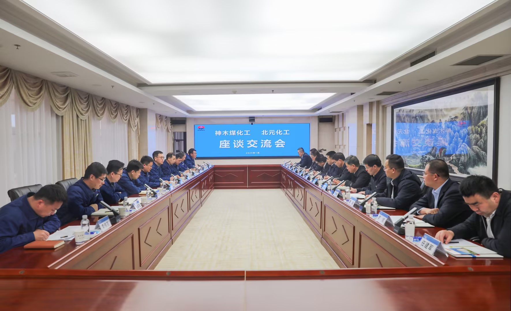 1月16日,神木煤化工公司黨委書記、董事長(zhǎng)雷宏春一行到北元集團(tuán),就新形勢(shì)下煤化工產(chǎn)品市場(chǎng)趨勢(shì)、業(yè)務(wù)拓展、合作共贏等方面與北元集團(tuán)黨委書記、董事長(zhǎng)史彥勇及班子成員座談交流。