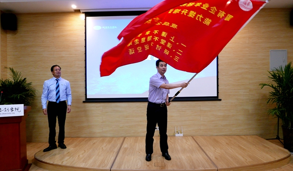 最后,付戰超向學員代表王瑋授本期培訓班班旗。旗幟上印有“班級公約”:一是上課不拿手機;二是課堂不隨意走動;三是研討不說空話。