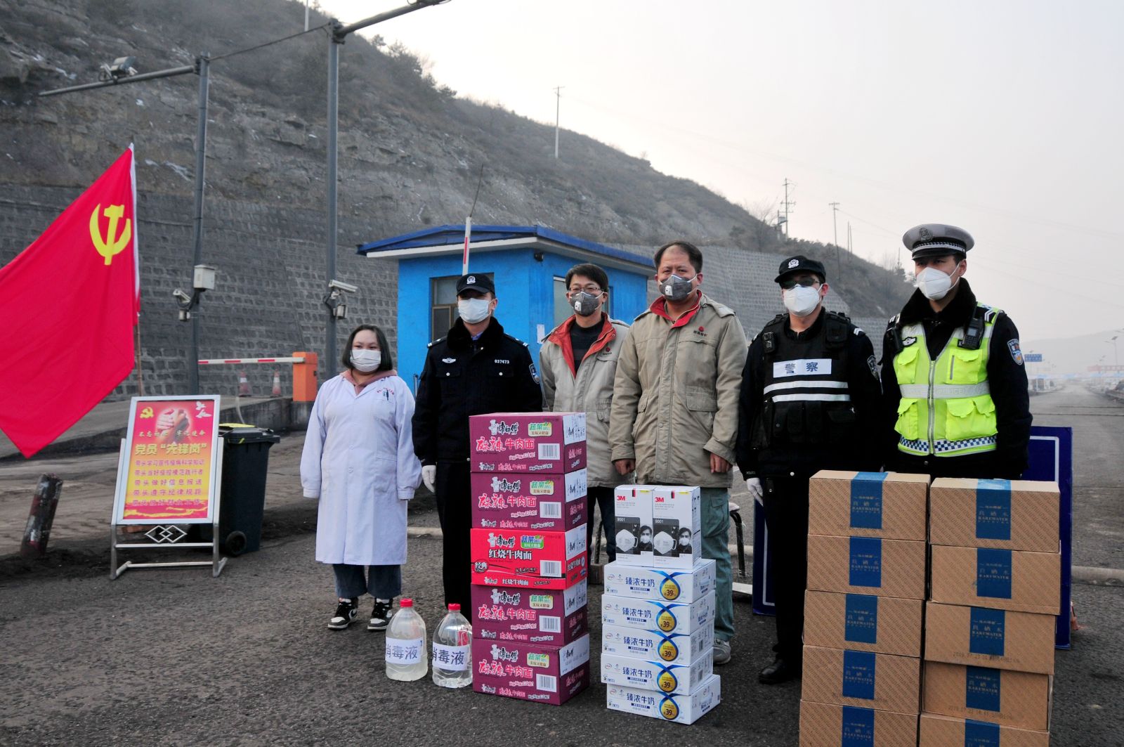 2月7日,在位于沙梁村道路上的疫情防控交通管控檢查點,東鑫垣公司為廟溝門鎮(zhèn)派出所的執(zhí)勤人員送去消毒液、口罩、水、牛奶、方便面等慰問物資,表達企業(yè)對地方政府開展疫情防控工作的一份支持。(馬佳亮)