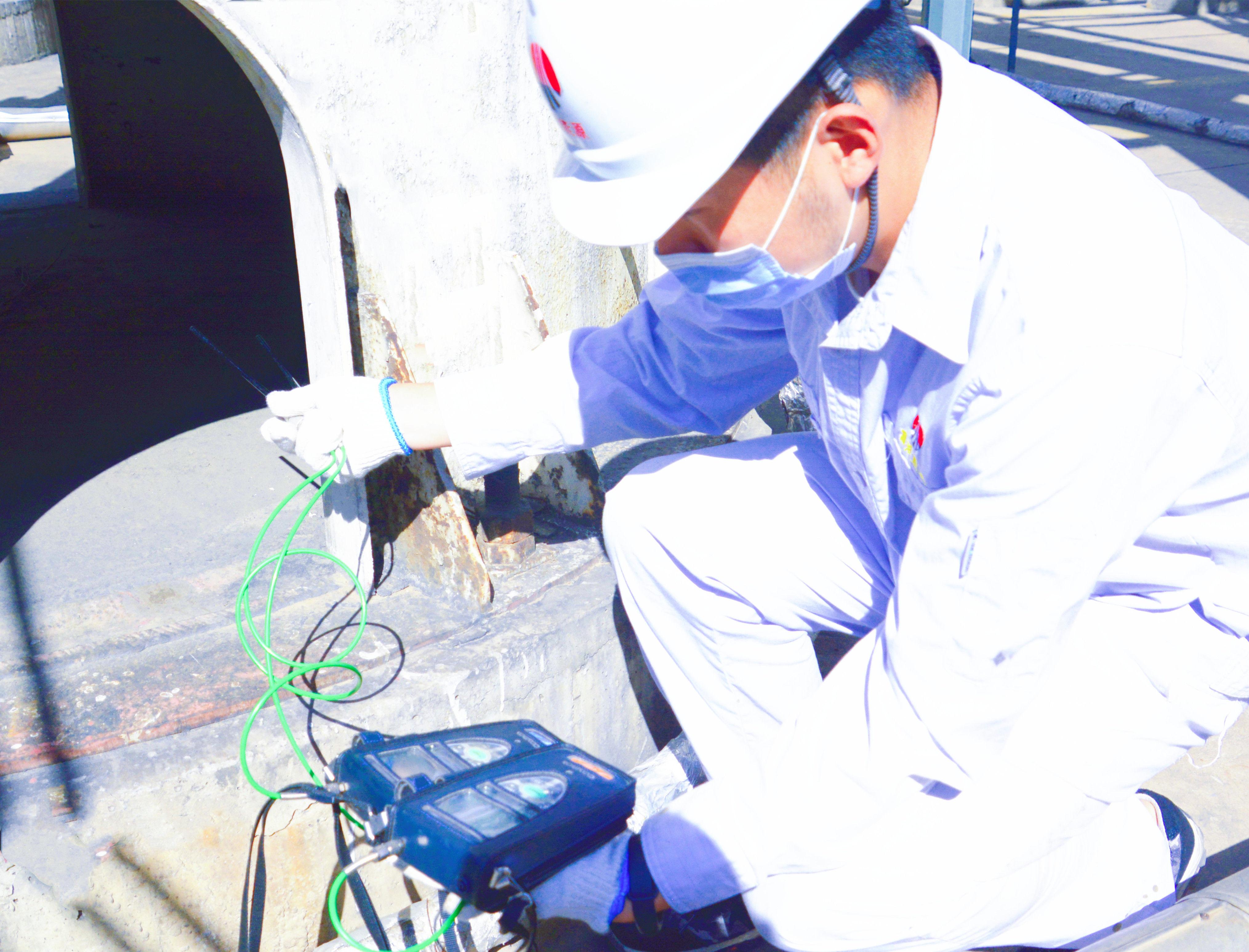 技術(shù)人員正在查找漏點,測量管線數(shù)據(jù)