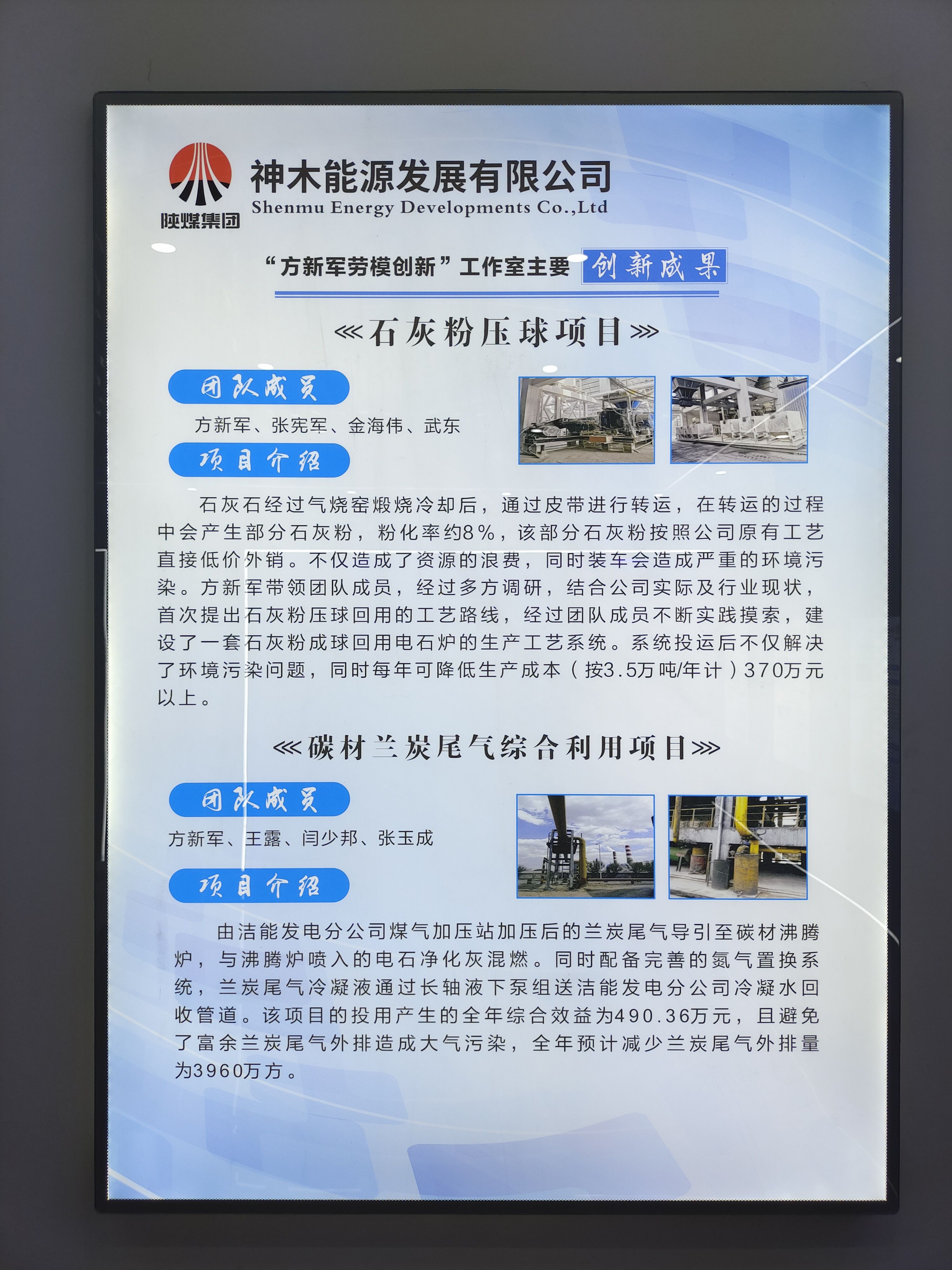 “典例上墻”展風采。能源公司將《石灰粉壓球項目》《蘭炭小料的摻燒》《電石爐智能化升級改造》《一二期主蒸汽、朱凝結水管道并聯項目》《現代化集中控制室升級改造》等重要創新成果定制成欄,裝于墻體,以激發員工創新意識,增強員工創新能力,加強各分公司之間的科技創新與交流互鑒,優化科研管理并促進公司技改技措及轉型升級發展。