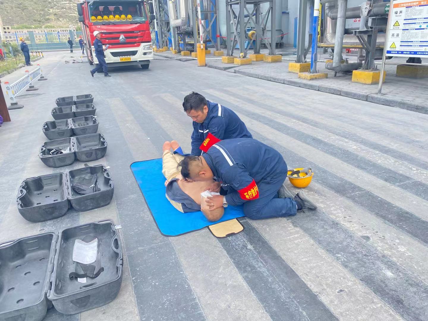近日,神木煤化工電化公司在電石分廠緯二路開展2021年綜合應急演練,演練背景為模擬6#電石爐C相變壓器跳停著火,一人一氧化碳中毒心臟驟停現場救護。