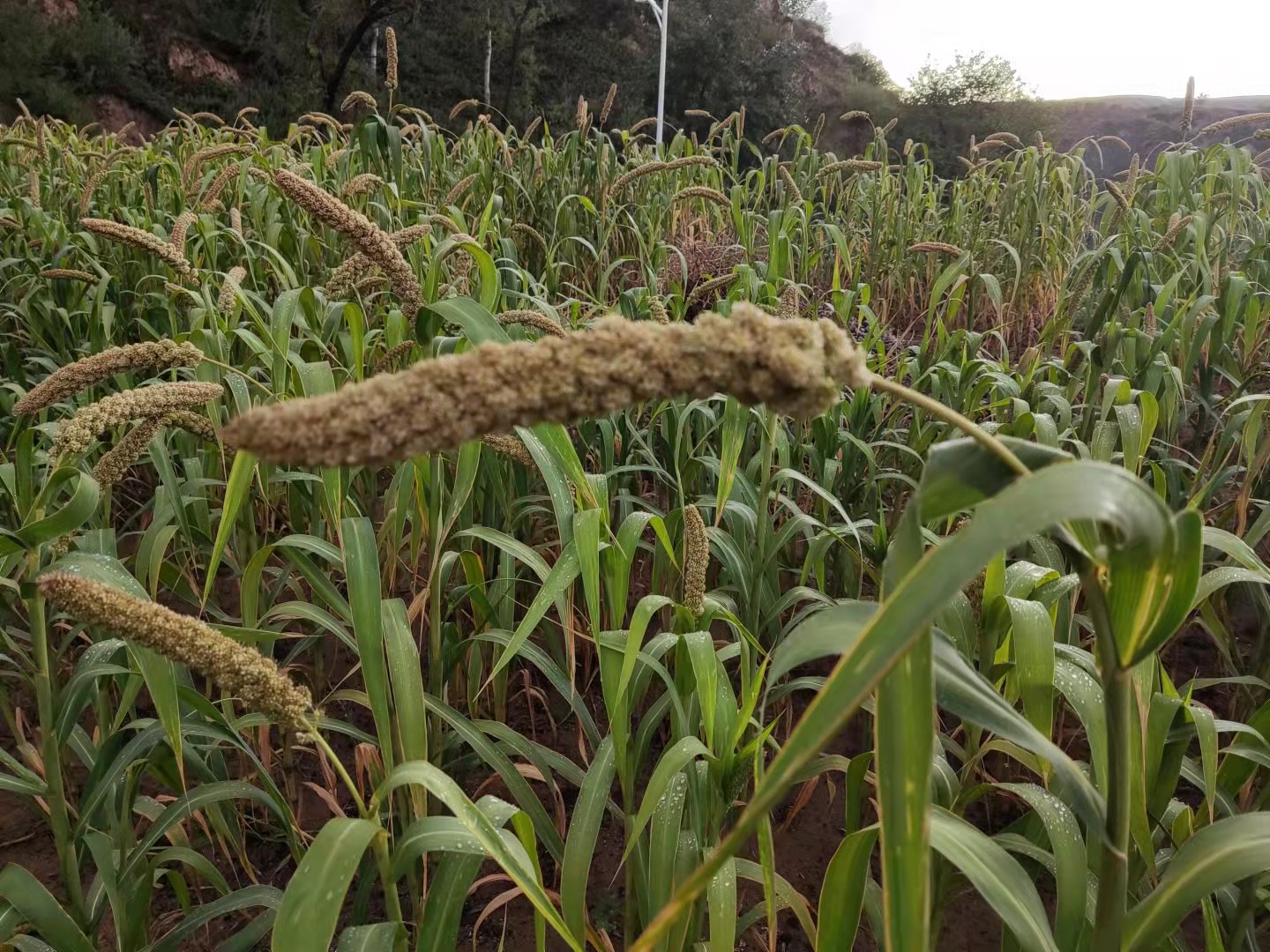 莊稼在秋的秋天奏出激越奔放的旋律,秋天的田野點綴著豐收和喜悅。黃豆藤條交錯縱橫,飽滿的豆粒脹開了狹長的豆莢,從豆莢里跳了出來,似乎在歡迎秋天的到來;高高的樹上掛滿了一個個紅通通的棗兒,在陽光的照耀下格外顯眼;一眼望去的谷子地,在微風的吹拂下,翻著波浪,金色的穗穗兒已經壓彎了腰。金黃的玉米一片連著一片,飄揚的包谷葉子,宛如無數的手臂,等待著人們收獲……故鄉的人們正在田間地頭忙得不可開交……