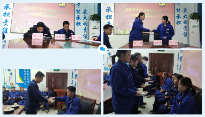 “師帶徒,薪火傳?!睘楦玫卮龠M潔能黨支部青年員工的成長和發展,提高青年員工的業務本領和技能水平,發揮業務骨干的傳幫帶作用,神木煤化工能源公司潔能發電分公司黨政聯合推進“師徒結對”活動,通過雙向培養,將優秀黨員培養成先進業務骨干,將先進業務骨干培養成優秀黨員,不斷為黨組織輸送“新鮮血液”,為公司培養先進業務骨干。