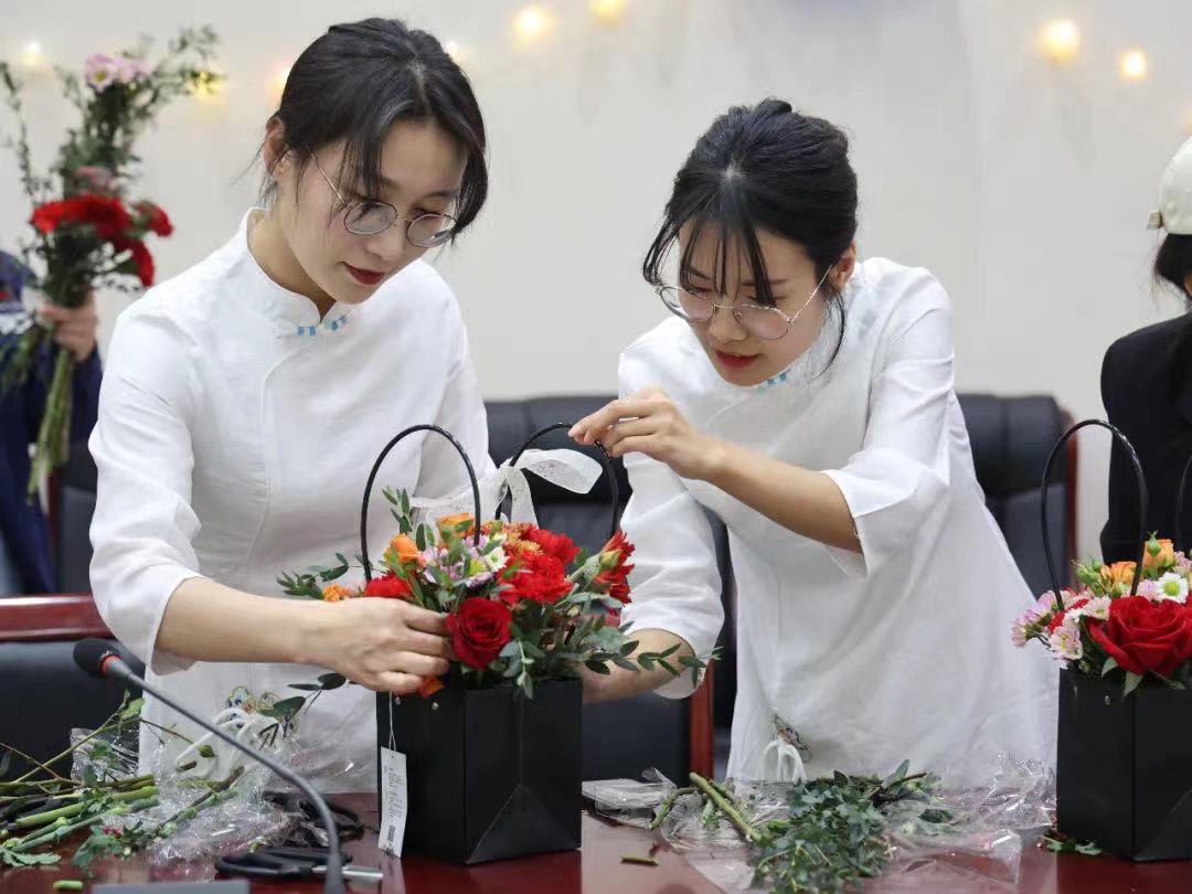 女神的節(jié)日怎么能少了鮮花?玫瑰、康乃馨、雛菊……鋪滿房間的幸福感,此刻,電化女工正沉浸其中,在花藝師的現(xiàn)場(chǎng)教學(xué)下,順應(yīng)植物的生長(zhǎng)形態(tài),用創(chuàng)意的修飾,展現(xiàn)出花草自然的美,插出一個(gè)個(gè)代表美好的花籃。這一刻,把工作、家庭暫時(shí)放在一邊,只做自己,一起把生活過成詩。