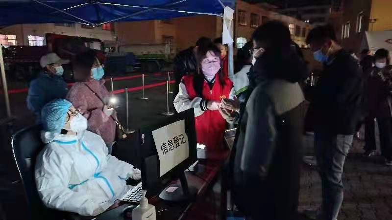 “年輕人,我不識字,這個怎么填?”“這個怎么注冊?”“我給孩子做核酸,沒有行程碼,怎么辦?”“從哪個通道走?”……每位志愿者都在耐心地引導和解答著大家提出的問題。四個多小時,幾百名核酸測驗者順利完成檢測。