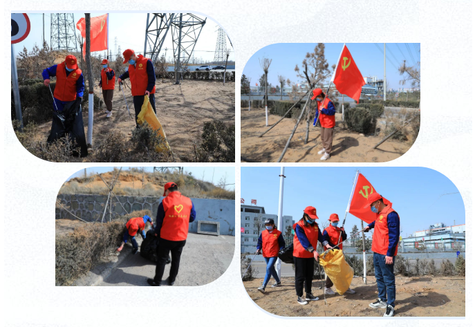 能源公司員干部、入黨積極分子們穿戴好紅色志愿者馬甲,扛起黨旗,拿上夾子等工具排著整齊的隊伍前往環境清理區、主干道兩側。大家按照事先分配好的責任區域開始忙活起來。勞動中,撿垃圾、鏟雜草,大家穿梭忙碌的身影形成了能源公司春日里一道亮麗的風景線。經過1個多小時的勞動,放眼望去,能源公司大門外主干道容貌煥然一新,處處展現著“綠色能源”新景象。