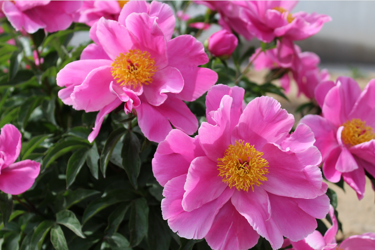 廠區里的芍藥花姿一朵和一朵不盡相同。有的含苞待放,碧綠的花苞上點著一點朱紅;有的剛剛開放,含羞帶怯;有的完全盛開,姹紫嫣紅……芍藥的花有單瓣的、重瓣的,重瓣的美麗大方、富貴妖嬈;單瓣的簡潔明快,清純無暇。上下班的途中,欣賞到這樣的美景,所有的忙亂、繁雜、疲憊都會被這情景沁潤,心情一下子好多了。